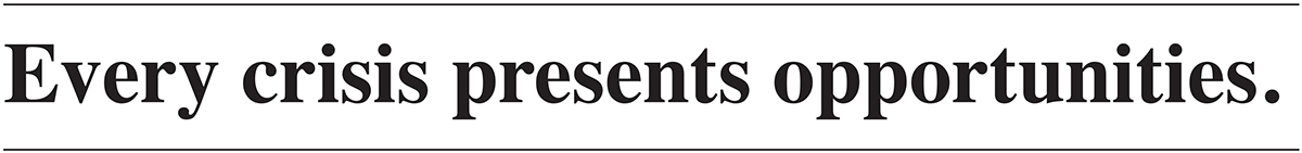 Every crisis presents opportunities. Just this week, I read that money is flowing out of stock funds at a record pace. That means that record numbers of owners of those funds who were unprepared to ride out a shock like this sold their devalued (a.k.a., on sale) shares to a buyer who was ready, willing, and able to buy them.